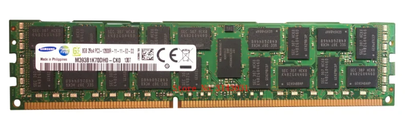 Fabricant: Samsung Type d'application: serveur Types de mémoire: DDR3 ECC REG Capacité de mémoire: 8 go 16 go Mot de passe: 240pin Puce: Double distribution de 36 particules Fréquence de la mémoire: PC3-10600R = 1333MHz Tension mémoire: 8 go 1.5V, 16 go 1.35V Formes d'emballage: boîte Attribut: Original authentique Garantie:Garantie à vie Ceci est la mémoire du serveur, Ordinateur de bureauNe peut pas être utilisé X58 1366 LGA et X79 2011 LGA Peut utiliser
