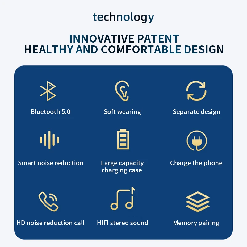 2, 2200mAh boîtier de charge peut charger 2 écouteurs environ 15 fois, offrir plus de temps de musique.