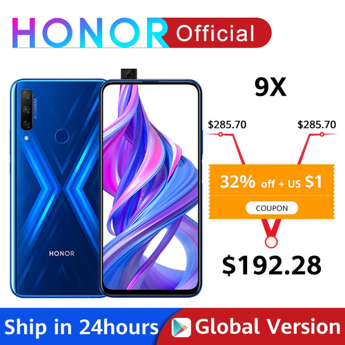 Smartphone 48MP AI Triples Camera 6.59'' Global Version Honor 9X 4GB 128GB Mobile Phone