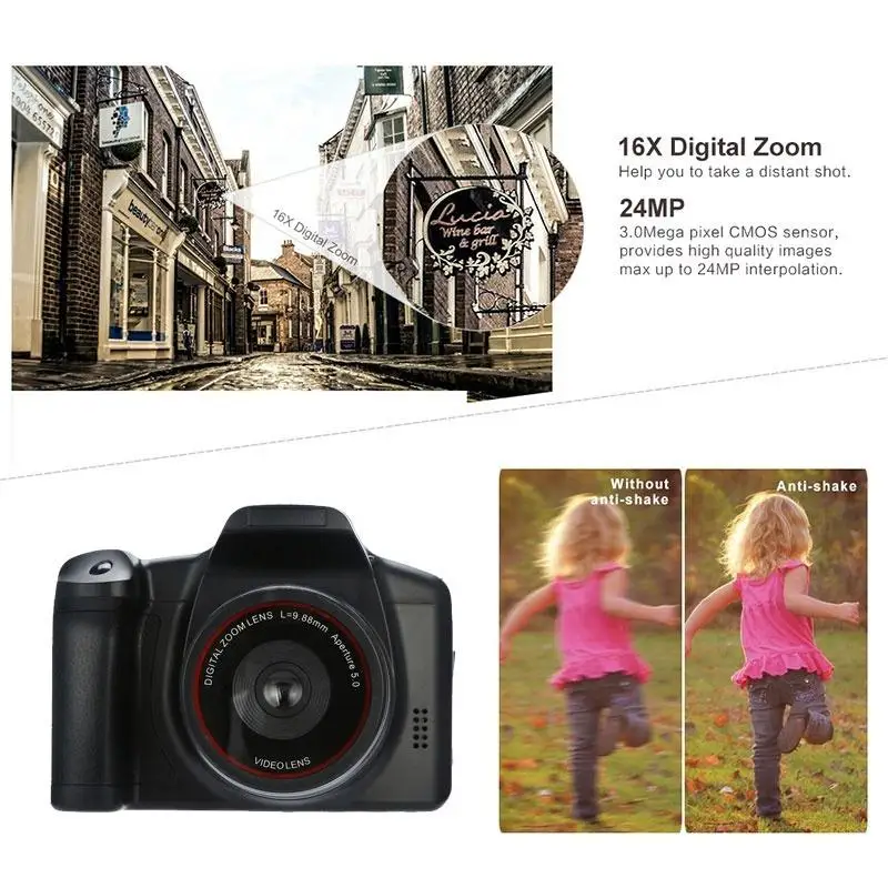 2.4/2.8inch Video 16 Times Camcorder Handheld Digital Camera 16X Digital Zoom De Video Camcorders Professional Camera (black)