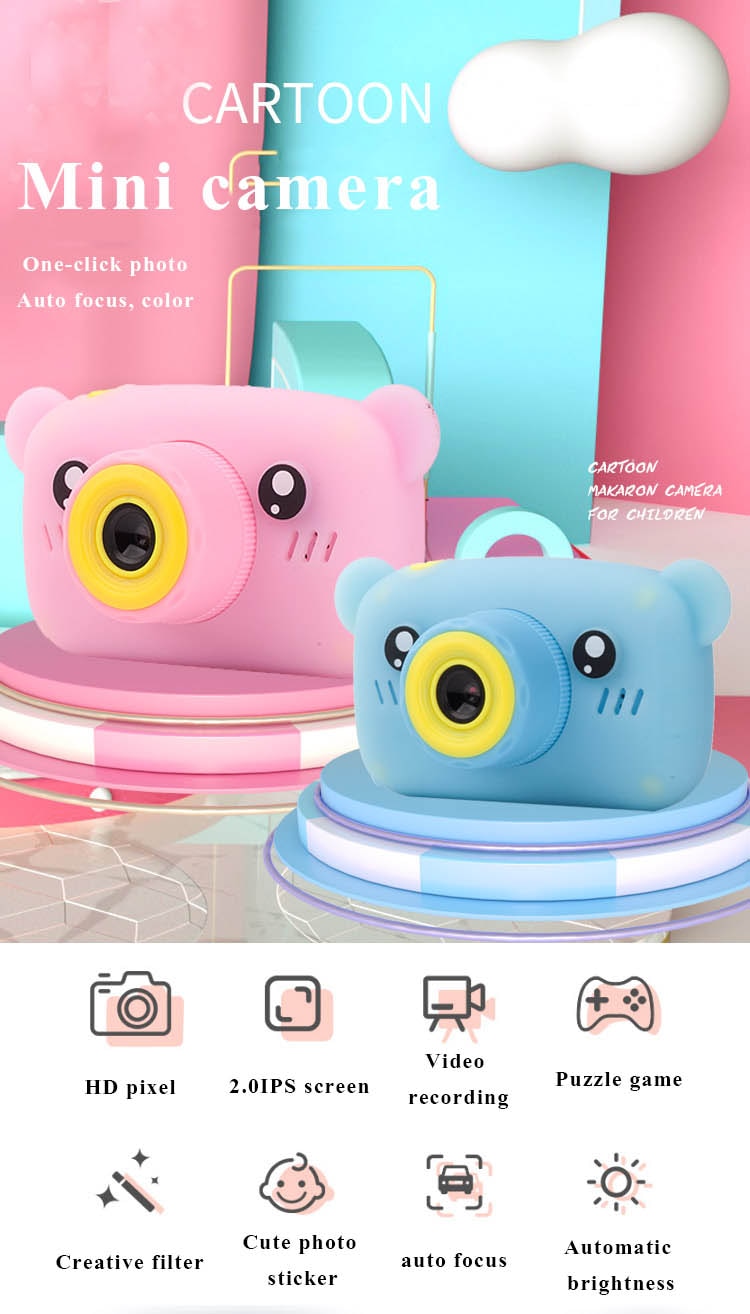 1. Ultra-mini size, suitable for children's small hands, charming cartoons and bright color design, is a thoughtful gift for children, is a magical camera that opens up intelligence to cultivate children's observation and discover beauty.